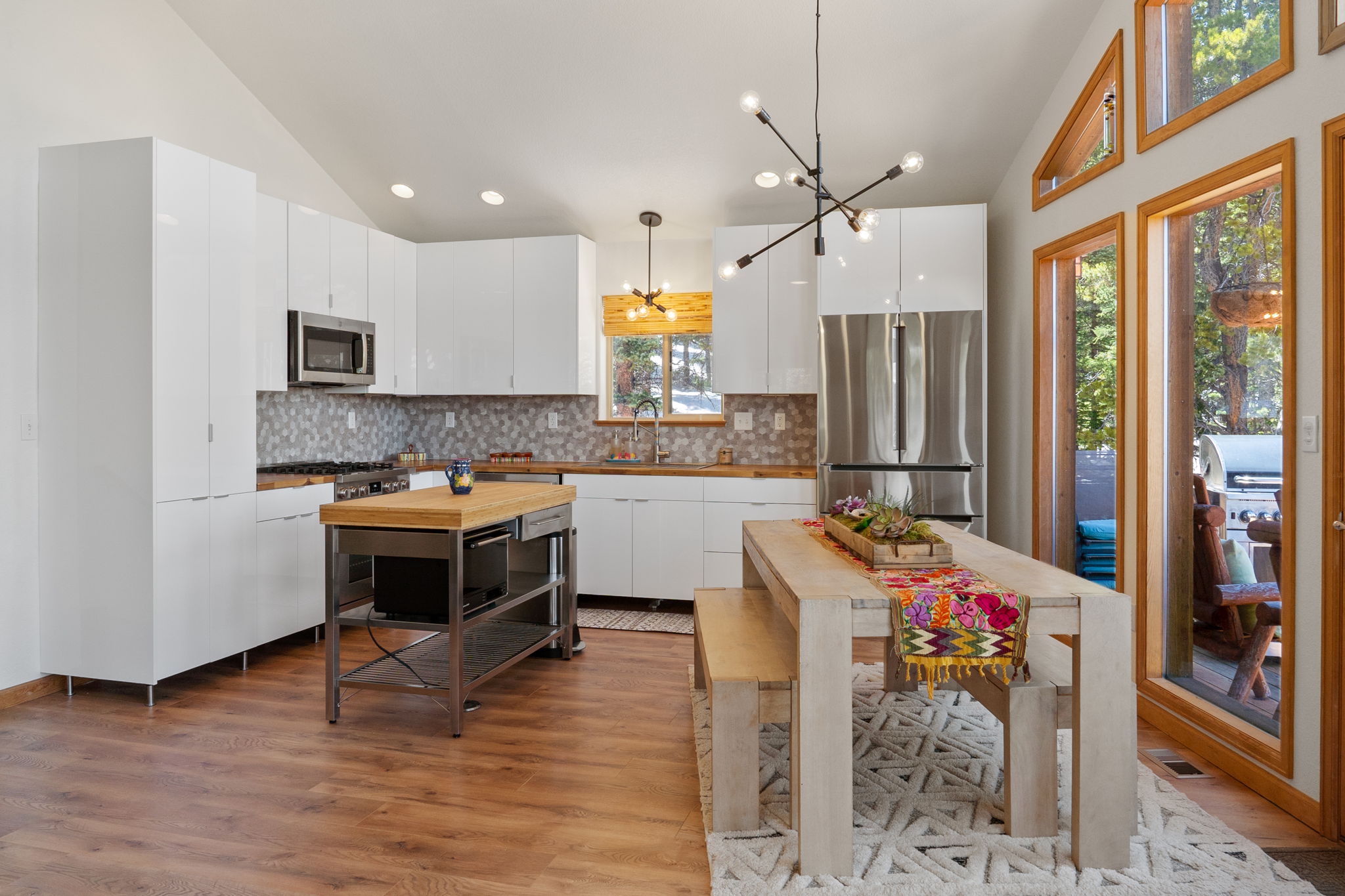 Welcome to this mountain contemporary gem that offers not only comfort and style but also lovely views of the majestic mountains that surround it! The heart of this home is its NEWLY renovated kitchen, where form meets function, featuring top-of-the-line BOSCH stainless steel appliances, sleek cabinetry, and butcher block countertops! TWO spacious living areas - one flows seamlessly into the dining and kitchen area, and another creates an inviting space for large gatherings and socializing with direct hot tub access! Step outside to the hot tub and 'soak in' the beauty of nature and relish in the tranquility of the forest and mountain views! Enjoy the convenience and elegance of two updated bathrooms, meticulously designed with modern fixtures and finishes. This private location is just minutes from National Forest access and conservancy lands...perfect for outdoor excursions! Perfectly situated mountain property for seclusion AND adventure with the renovations already done - MOVE IN READY with the furnishings too - too much to list! Call for more information!